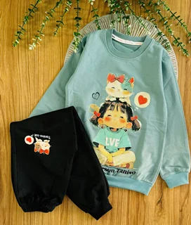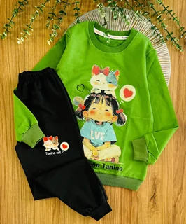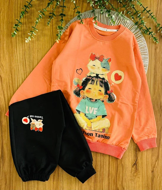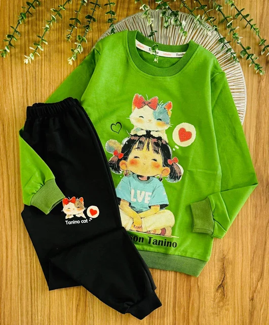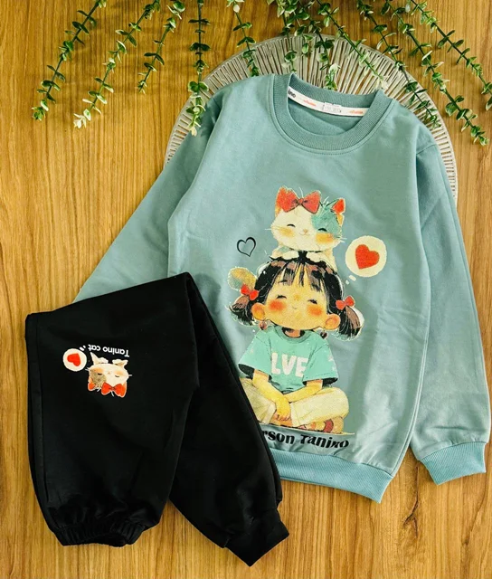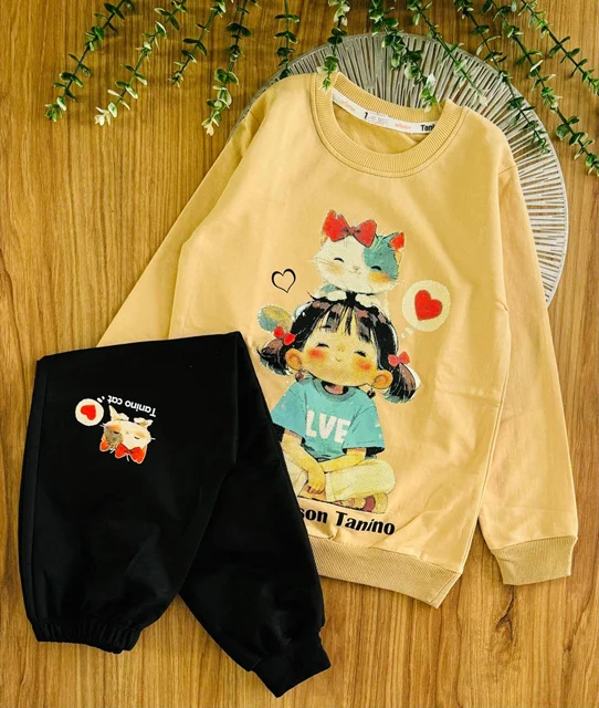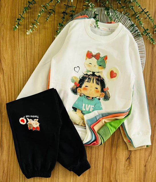 ست بلوز و شلوار طرح دختر و گربه کد ۱۹۶۵