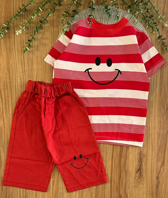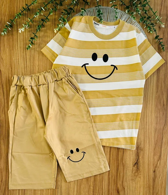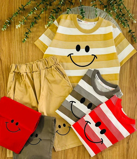 ست تیشرت و شلوارک طرح لبخند کد ۲۰۰۶