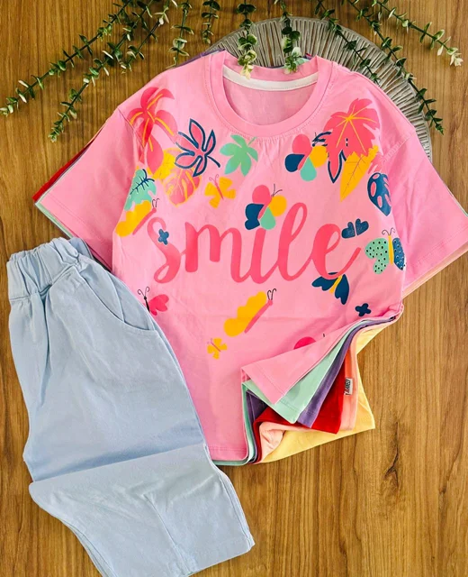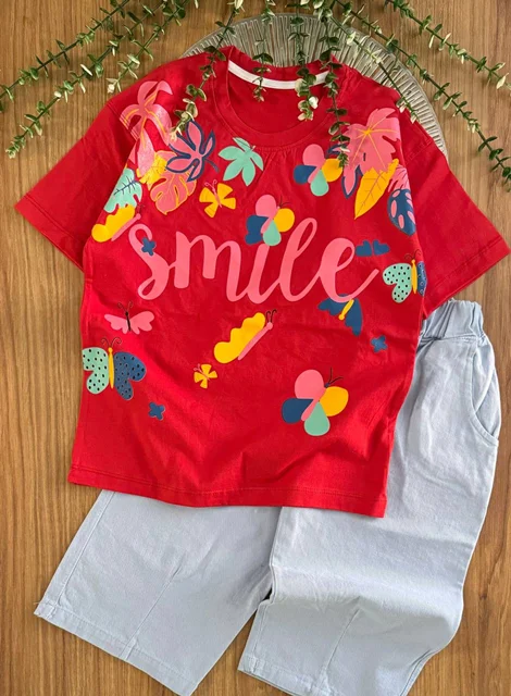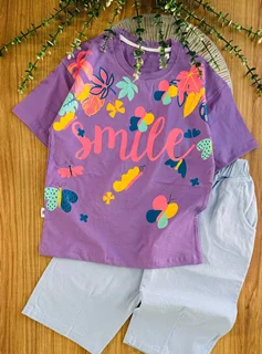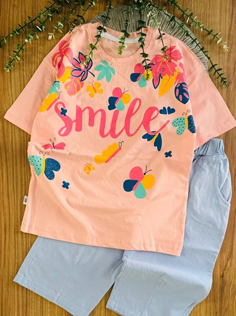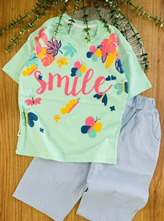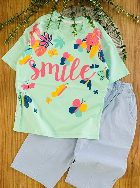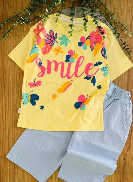 ست تیشرت و شلوارک کتان دخترانه کد2023