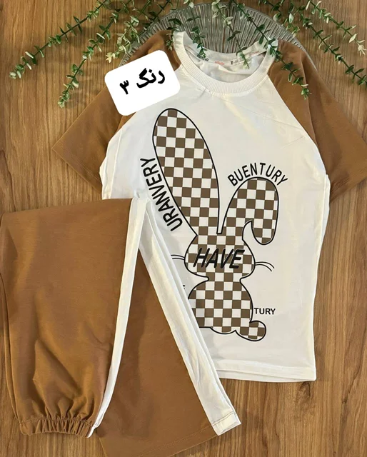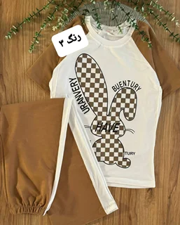 ست تیشرت و شلوار طرح خرگوش دخترانه کد2028
