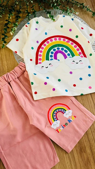 ست تیشرت و شلوارک دخترانه کد ۲۰۸۰