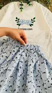 قد تیشرت ۵۵ پهنا از یکطرف ۴۱ قد دامن ۳۳ سانت