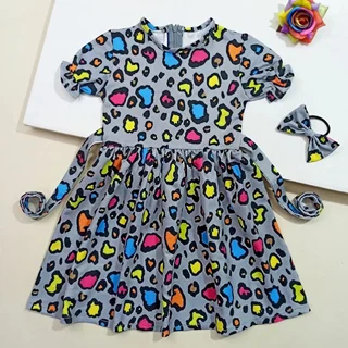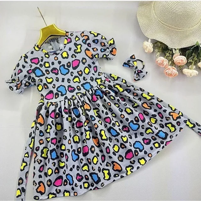 پیراهن دخترانه پلنگی به همراه کش مو کد ۱۰۸۵