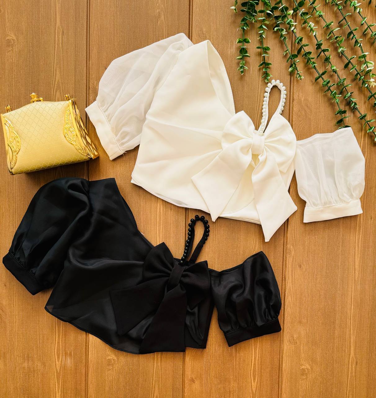 لطفا دقت بفرمایید 👈👈کراپ تک هست.اندازها حتما چک شود.جنس مازراتی و حریر 🔆قسمت سرشانه لباس مروارید کار شده 🔆پشت لباس بندینک کار شده