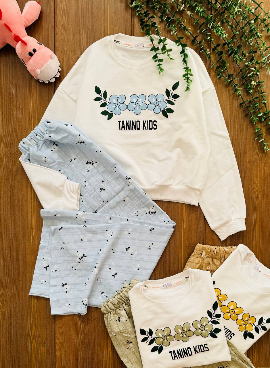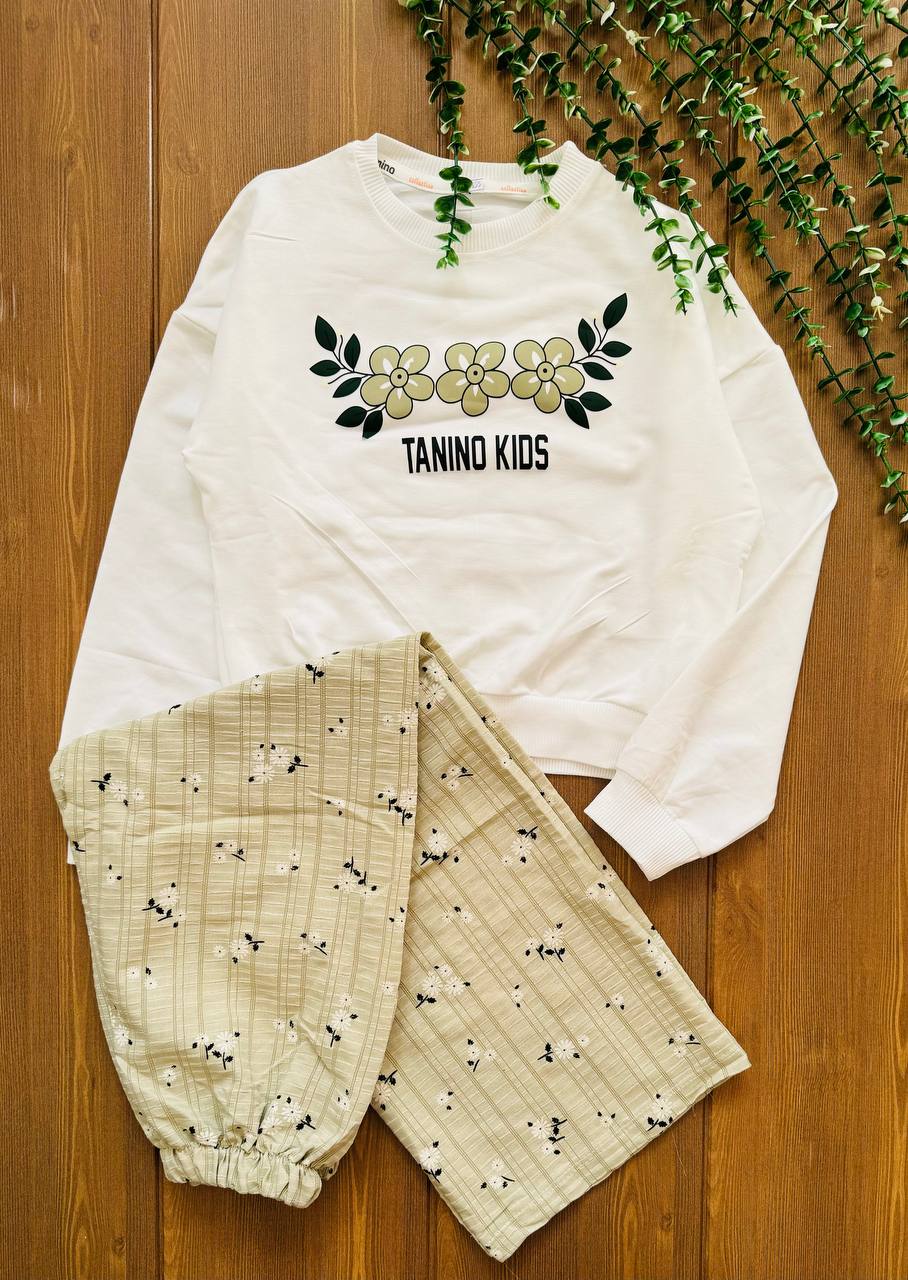 ست کراپ و شلوار دخترانه گلدار کد ۲۲۶۹