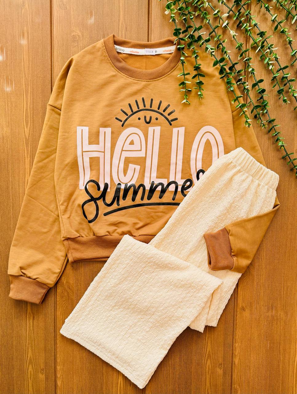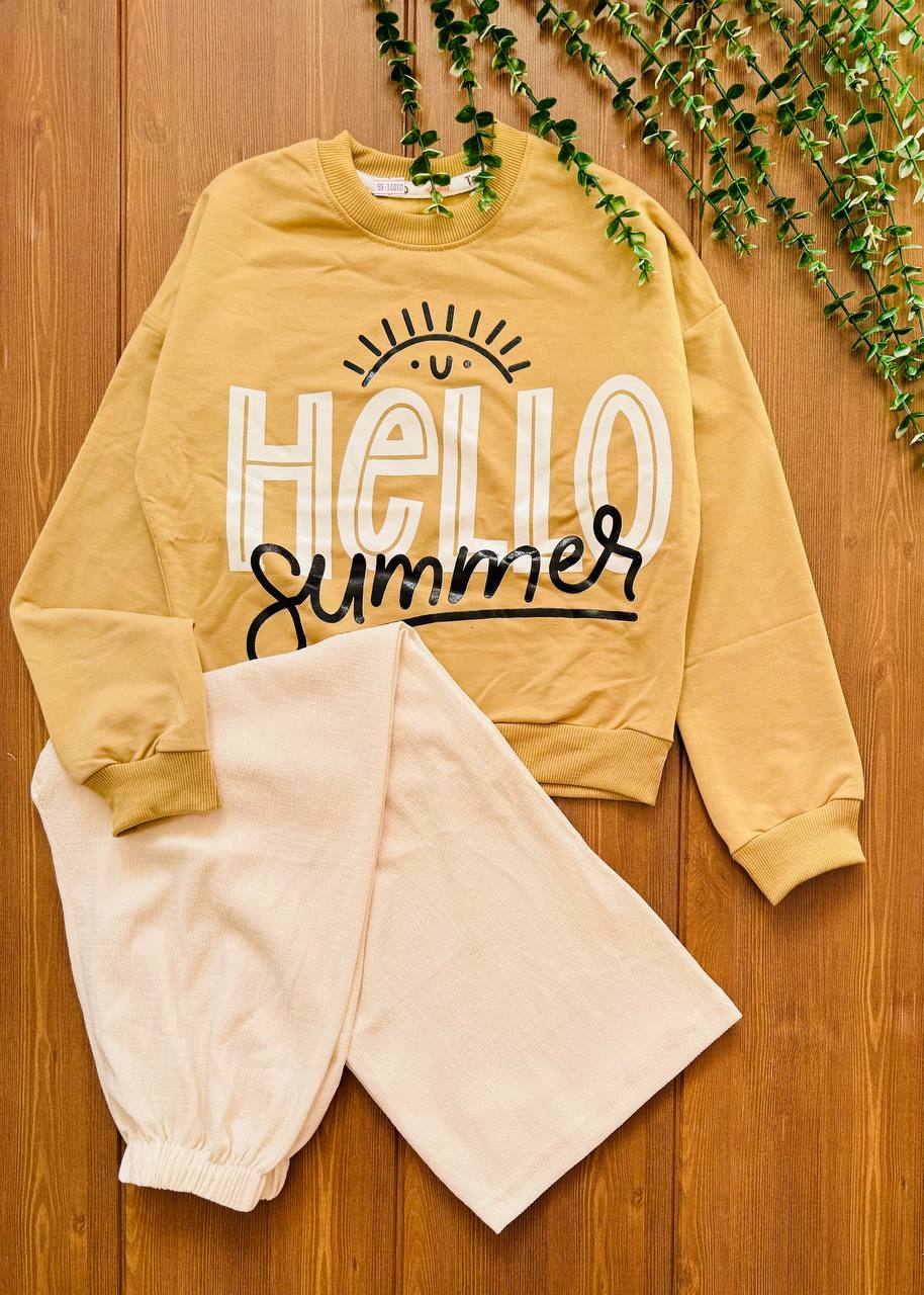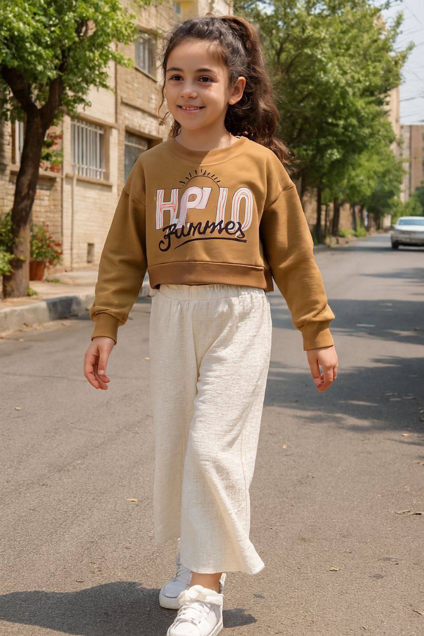ست کراپ و شلوار دخترانه helloکد ۲۲۷۰