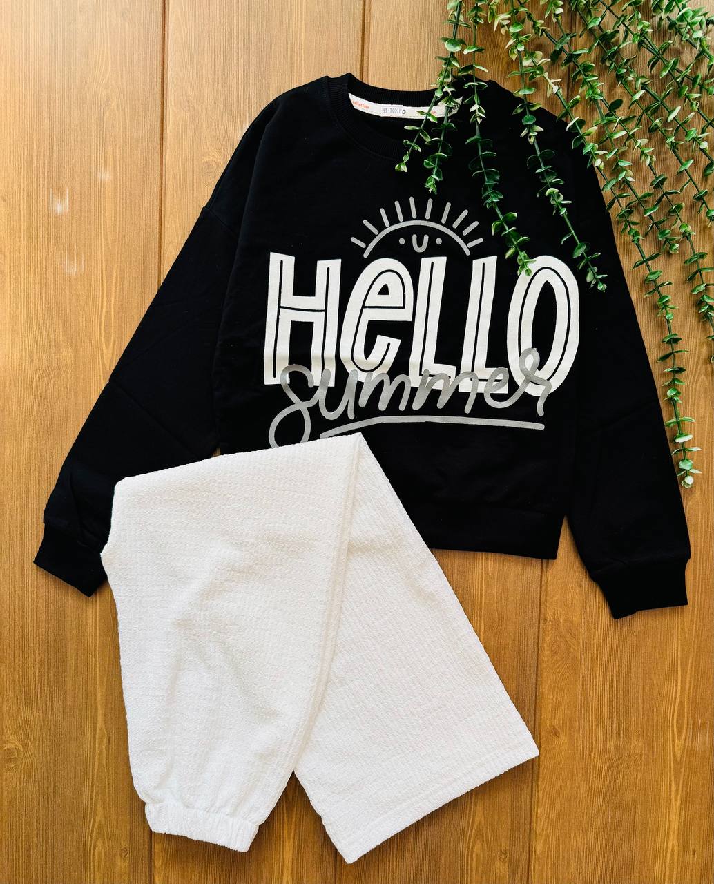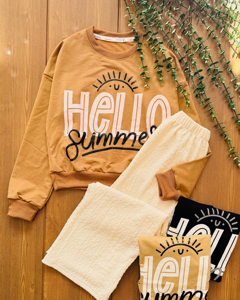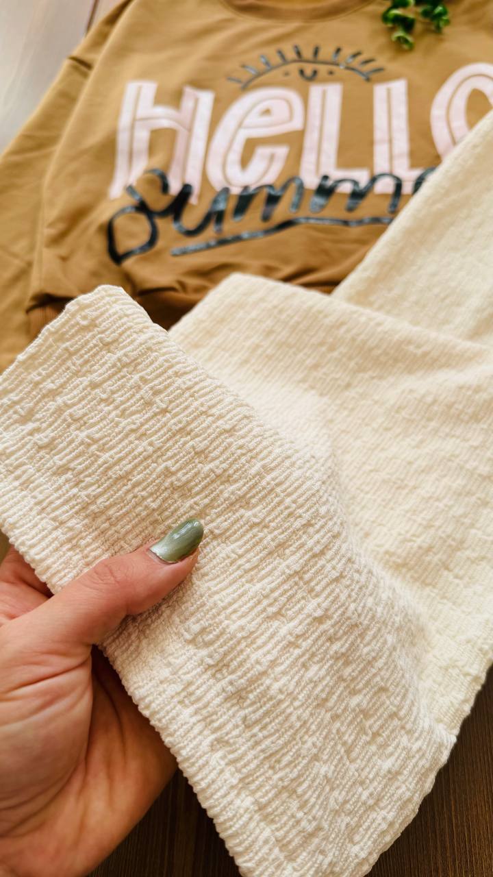 ست کراپ و شلوار دخترانه helloکد ۲۲۷۰