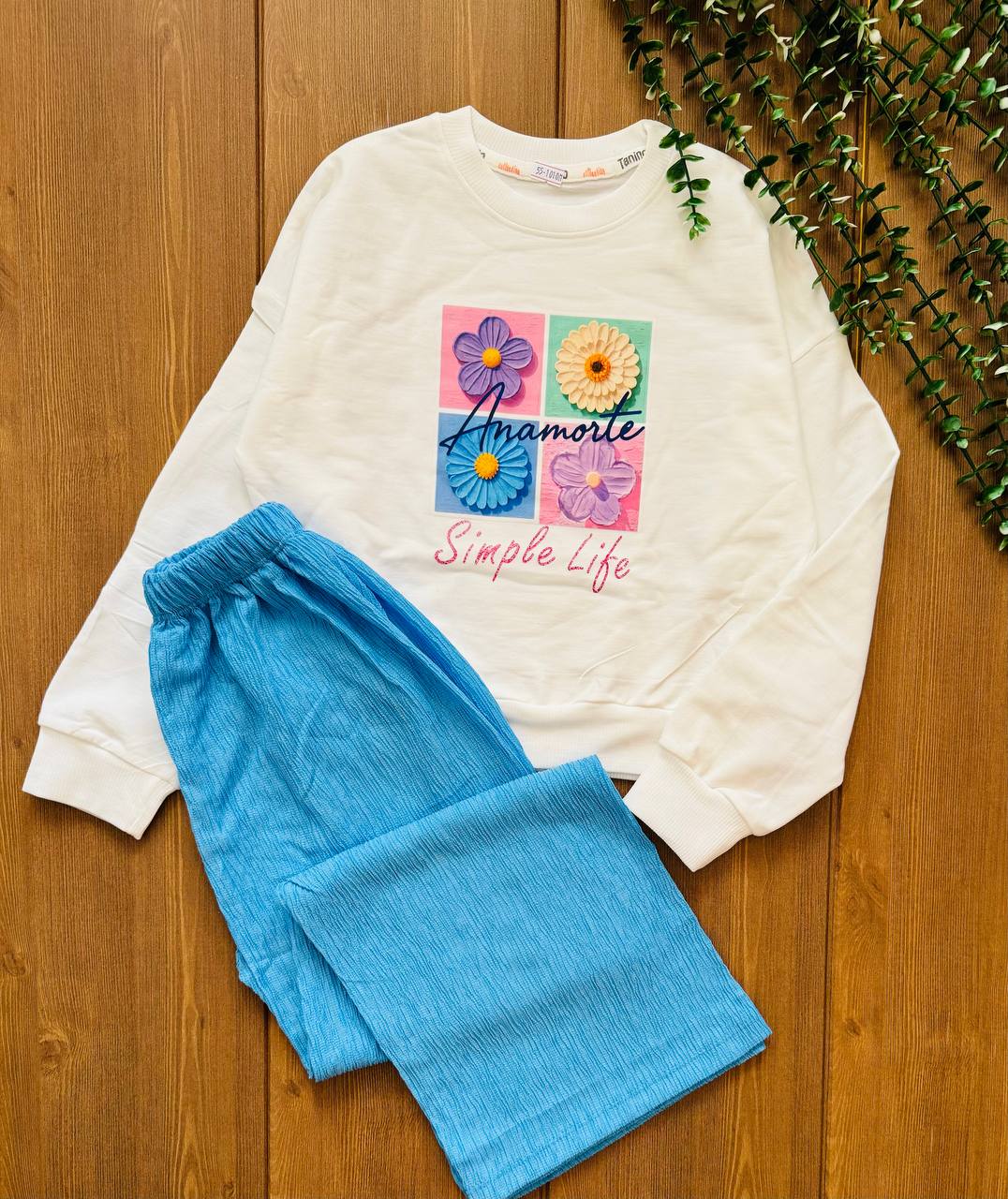 قد کراپ ۴۴ پهنا از یکطرف ۴۵ قد آستین از یقه کامل ۶۰ قد شلوار ۸۵ سانت