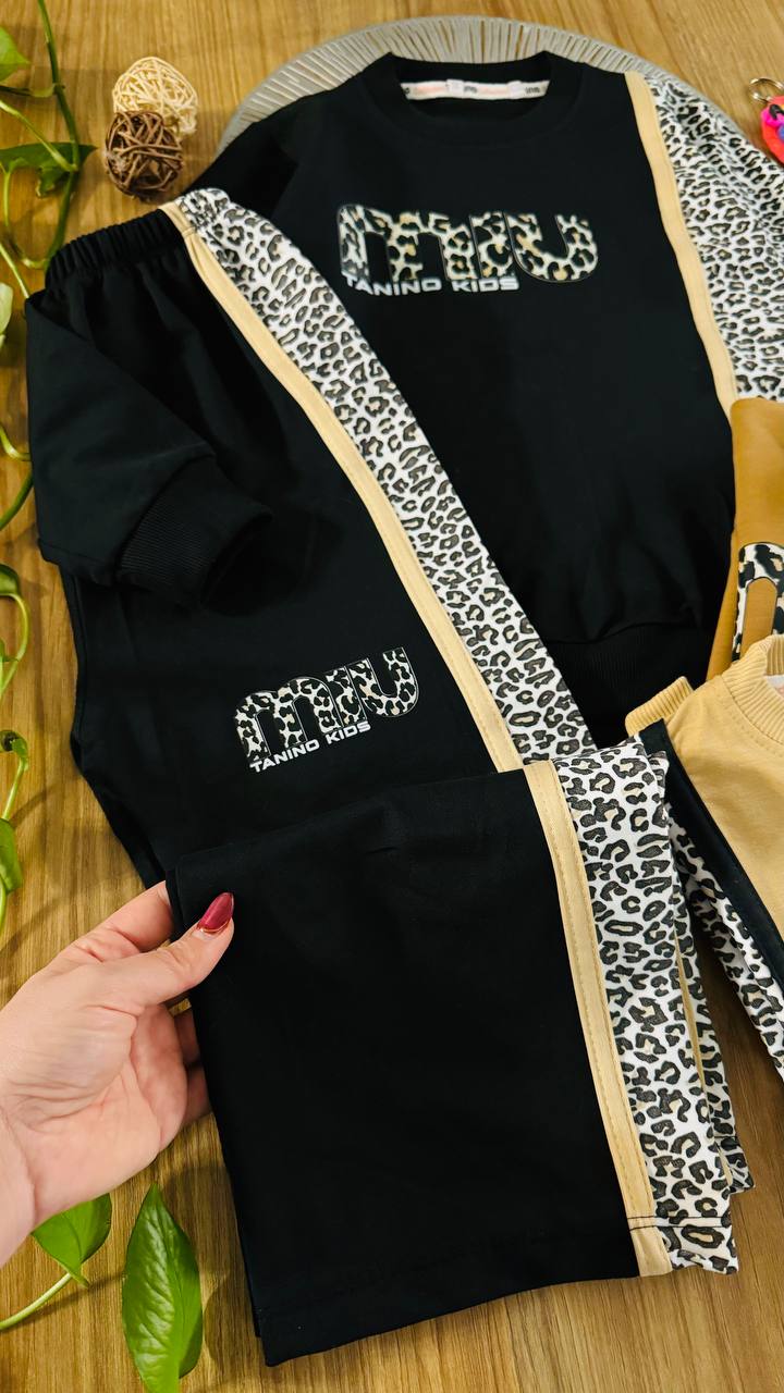 ست بلوز و شلوار بگ دخترانه با طراحی خاص پلنگی، مناسب دختران ۶ تا ۱۵سال. انتخابی شیک برای استایل اسپرت، روزمره و فشن شوست بلوز و شلوار بگ دخترانه یکی از ترندهای خاص و جذاب دنیای لباس دخترانه است که با طراحی مدرن و الهامگرفته از فشن شوهای روز، انتخابی ایدهآل برای دختران نوجوان بهویژه سنین ۶ تا ۱۵ سال محسوب میشود.این ست شامل بلوز آستینبلند با چاپ لوگوی خاص و شلوار بگ راحت است که با ترکیب رنگ کرم و جزئیات پلنگی، جلوهای شیک و متفاوت ایجاد کرده است. فرم آزاد شلوار باعث راحتی کامل در حرکت شده و برای استفاده روزمره، دورهمیها، استایل خیابانی و حتی اجرای فشن شو کاملاً مناسب است.