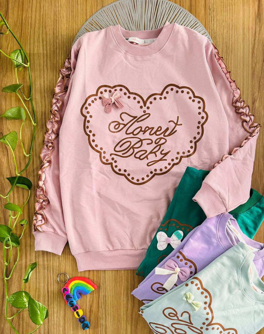بلوز دخترانه بنفش طرح قلب یکی از انتخابهای جذاب و ترند برای دختران خوشسلیقه است. این بلوز با رنگ ملایم بنفش و چاپ قلب بزرگ بههمراه نوشتهی Honey Baby، ظاهری فانتزی و دوستداشتنی ایجاد کرده که برای استفاده روزمره، مهمانیهای دوستانه و حتی استایل مدرسه بسیار مناسب است