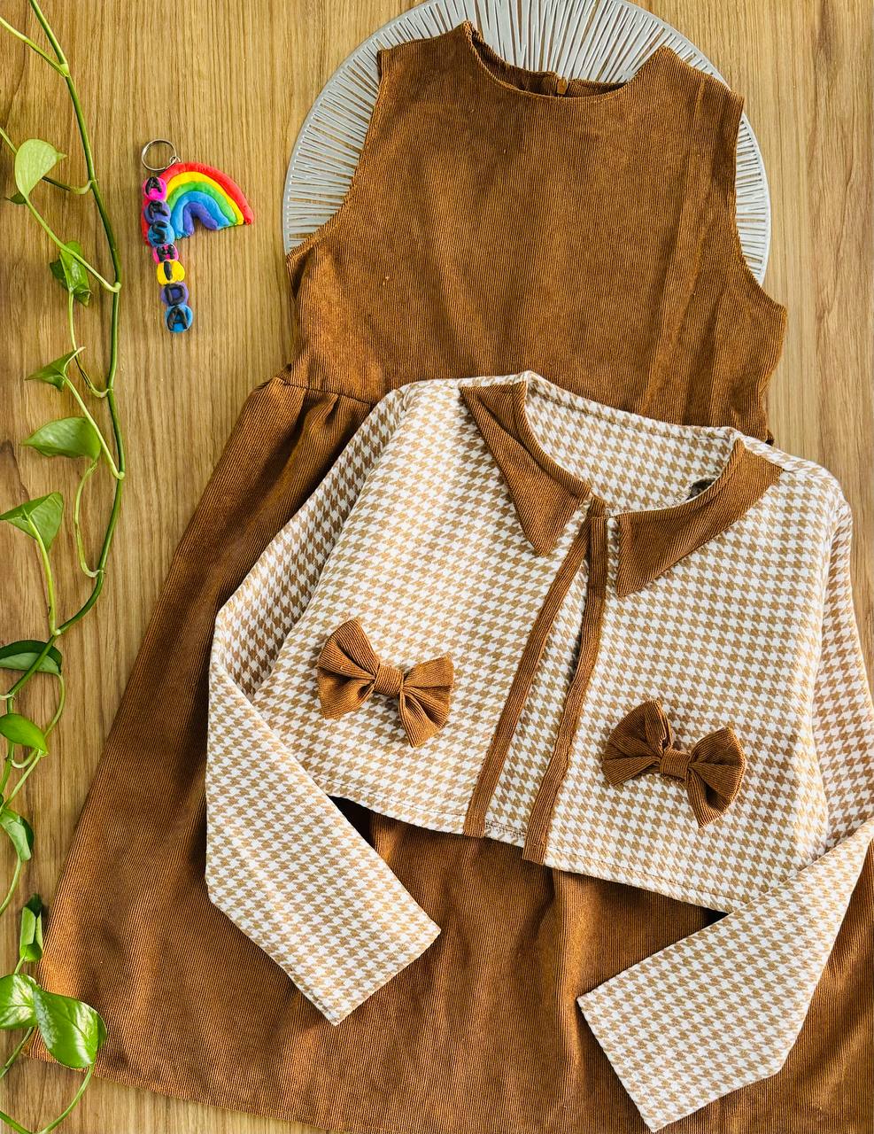 کت و سارافون دخترانه پاپیون دار کد ۲۴۲۵