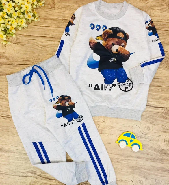ست بلوز شلوار تدی پسرانه جنس:ملانژ سایز:۴۰/۴۵ اندازه ها چک شود ✅