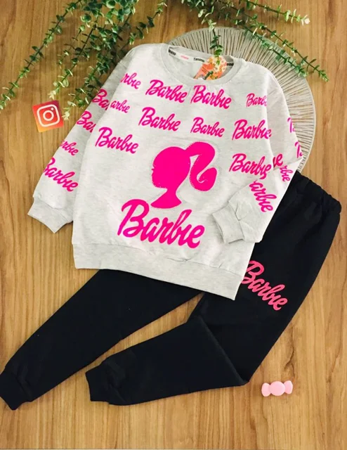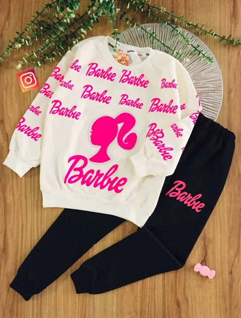 ست دخترانه کراپ و شلوار باربی کد ۱۳۸۴
