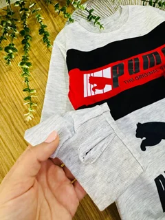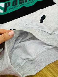 ست بلوز و شلوار پسرانه فینگردار پوما پارچه کشی پایین شلوار و مچ دستکش بافت کار شده با چاپمقاوم