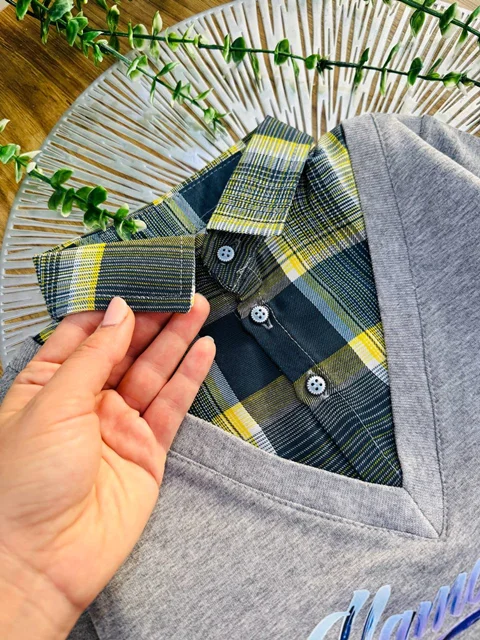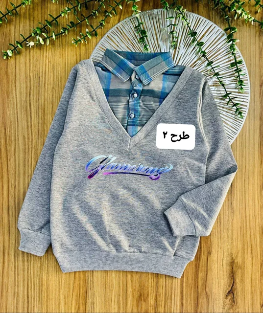بلوز پسرانه یقه مردانه پارچه کشی با کیفیت چاپ قوی و بادوام ۳دکمه