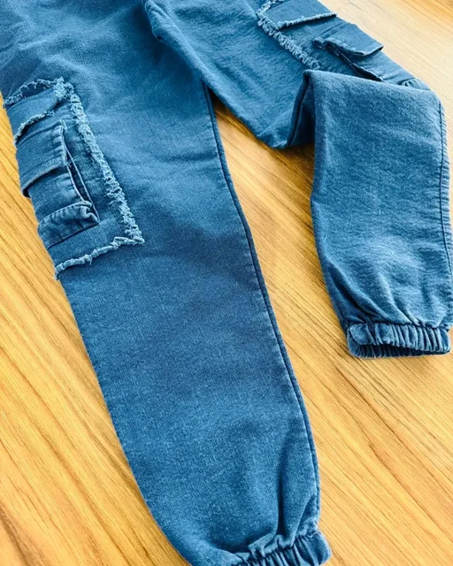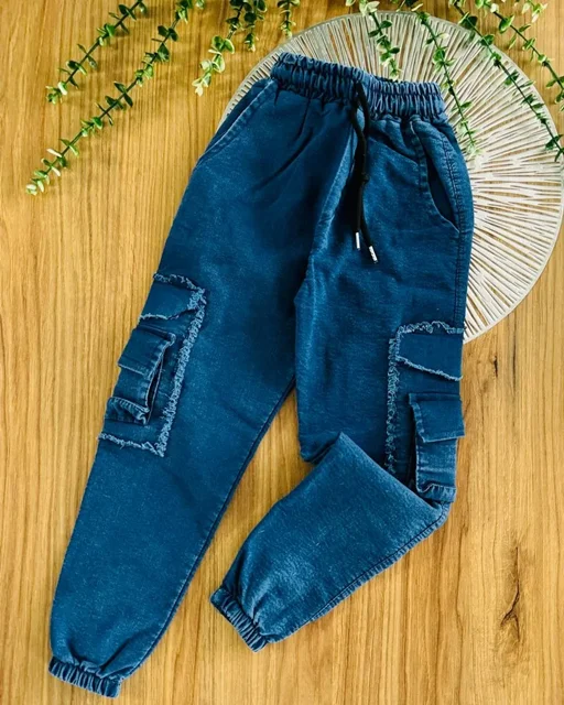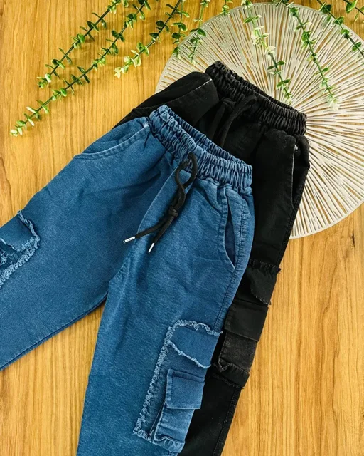 شلوار لی کاغذی اسپرت کشی مناسب دختر و پسر دارای کمر کشی جیب دار و بسیار راحت