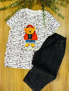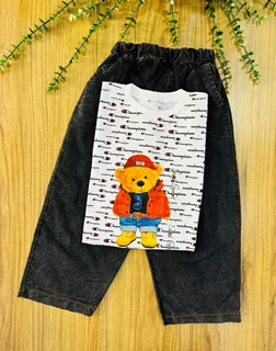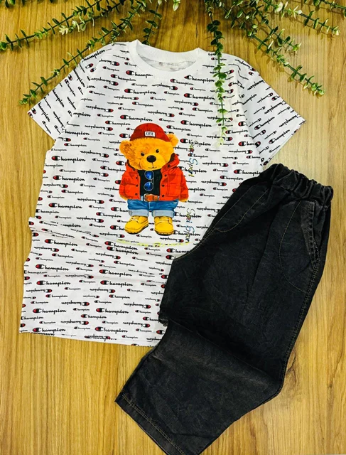 ست تیشرت و شلوار لی با چاپ زیبا سایزبزرگ پسرانه