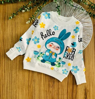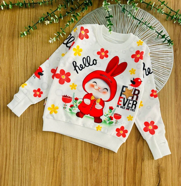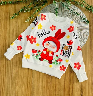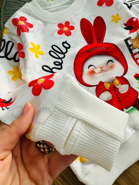 بلوز تک دخترانه آستین فینگر دار طرح خرگوش پشت رو چاپ کد ۱۳۹۵