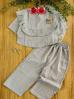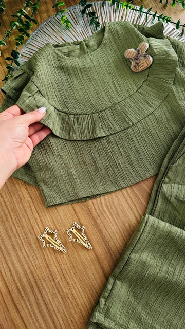 کراپ و شلوار بیرونی بچه گانه ست کد ۱۵۸۳